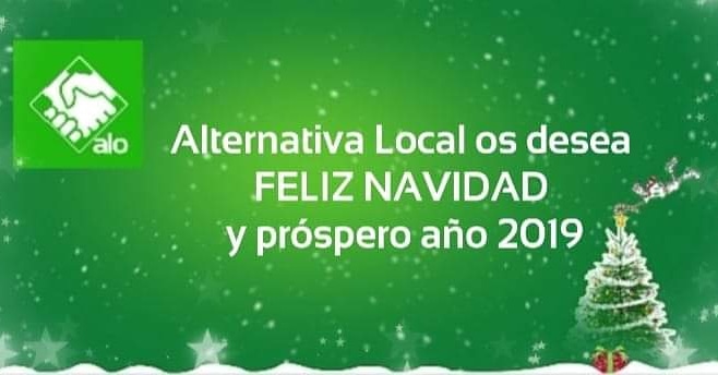 ¡Alternativa Local os desea feliz año 2019 a todos! Públicado en 31 diciembre, 2018 por ALTERNATIVA LOCAL Desde Alternativa Local os deseamos un muy próspero 2019 y esperamos que esta nueva estapa venga cargada de ilusión y felicidad para todos nuestros vecinos. ¡Feliz año nuevo!